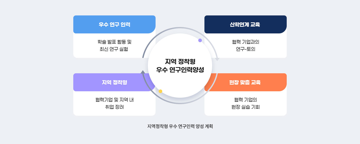 학부생과 대학원생의 교육과 더불어 산학연구 또한 적극적으로 육성하여, 지역 기업이 필요로 하는 기술로 특화된 연구역량을 갖춘 지역정착형 우수 연구인력을 양성·배출하고자 합니다. 뿐만 아니라 현장 중심의 실무적 교육과 연구를 이루어 우리 학과 졸업생들의 화학 관련 진출 기회를 넓힐 것입니다. 재료화학 분야의 특성화 교육과정을 통해 학생들로 하여금 다양한 새로운 학문을 접하게 유도하고자 합니다. 교과과정의 개편을 통하여 실무형 교과목의 신설과 산업형 교과목의 개설이 추진되었는데, 앞으로도 산업계의 수요를 반영할 수 있는 교과과정의 개편에 대한 유연성을 지닐 것입니다. 화학과는 기능성재료 분야로 특화된 학과로 발전하기 위해 그에 상응하는 교과과정의 개편을 꾸준히 진행할 계획입니다.