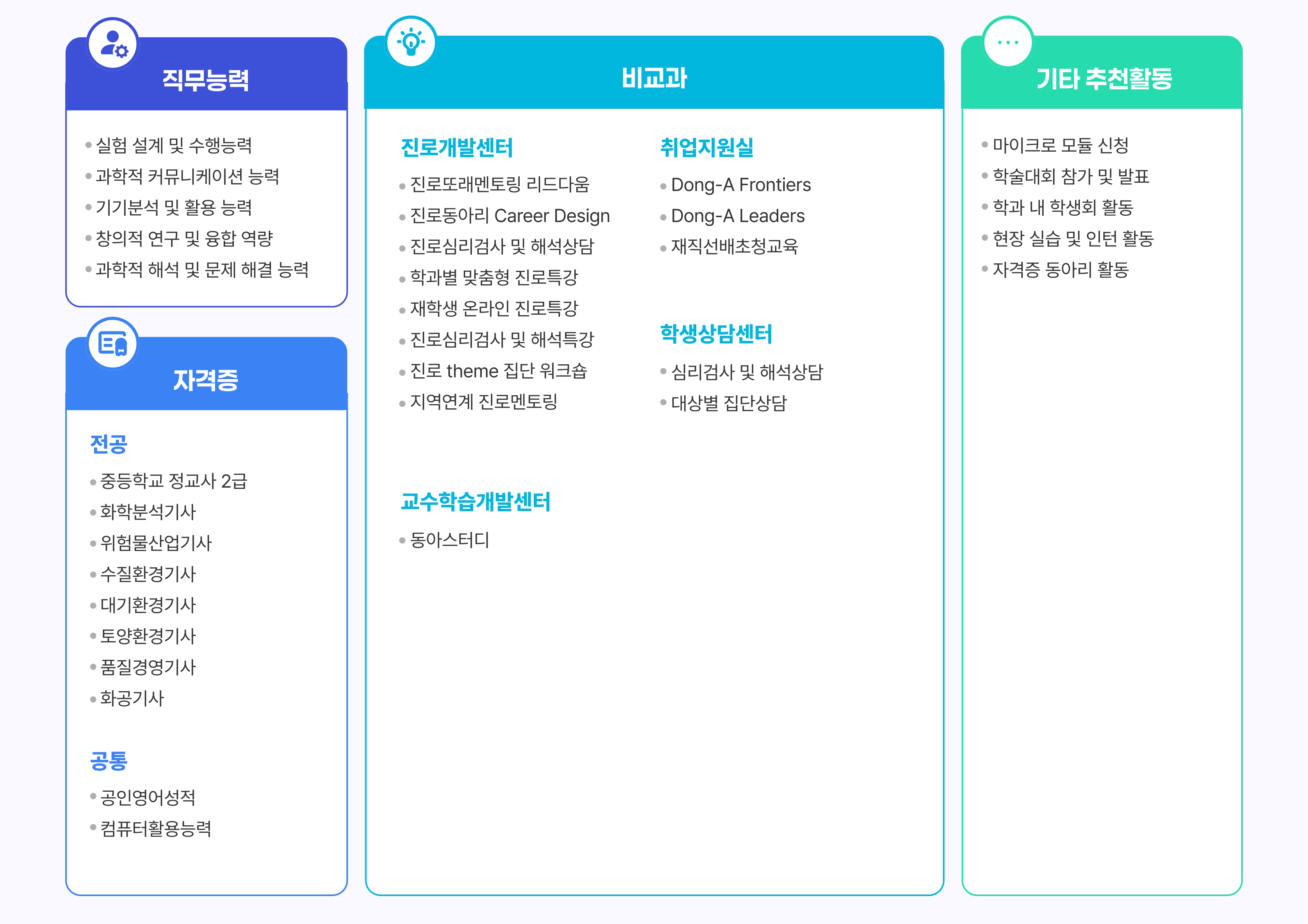 교과과정 열린 미래 꿈이있는 대학, 동아대학교 메인으로 이동 교과과정 학과소개 교수소개 교과과정 대학원 커뮤니티 취업정보 학생회 동아리 닫기 화학과 진로로드맵 교과연계성 및 교육내용 학번별전공교과 전공프로그램 장학안내 화학과 마이크로모듈 화학과 진로로드맵 닫기 교과과정 교과과정 교과연계성 및 교육내용 학번별전공교과 전공프로그램 장학안내 화학과 마이크로모듈 화학과 진로로드맵 화학과 진로로드맵 SNS 목록열기 FACEBOOK 공유하기 TWITTER 공유하기 BLOG 공유하기 SNS 목록닫기 인쇄 url 복사